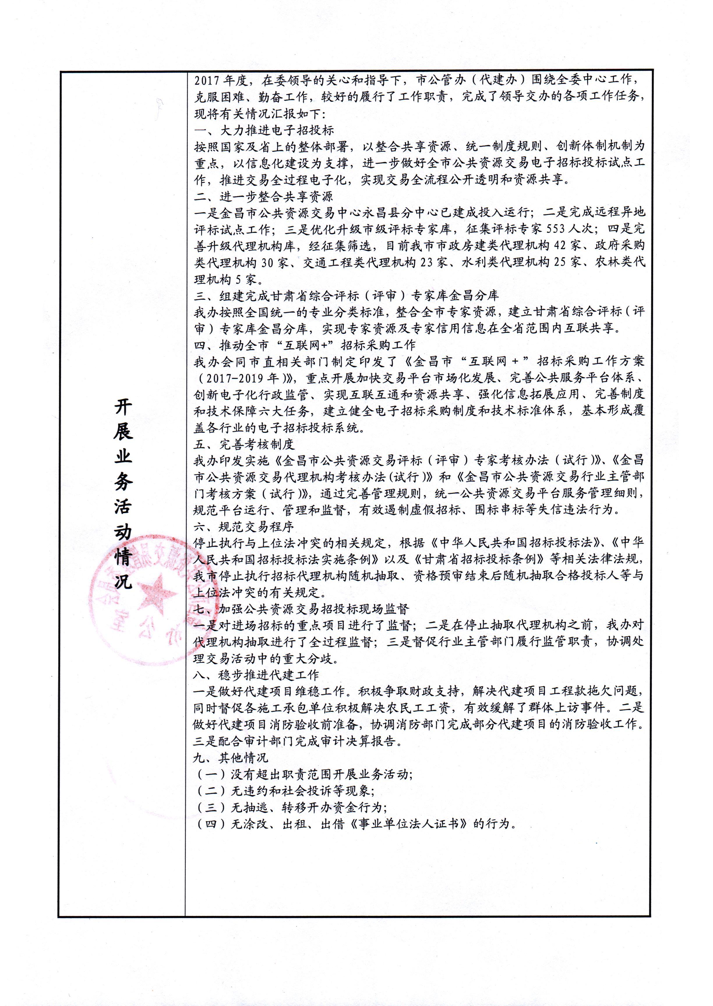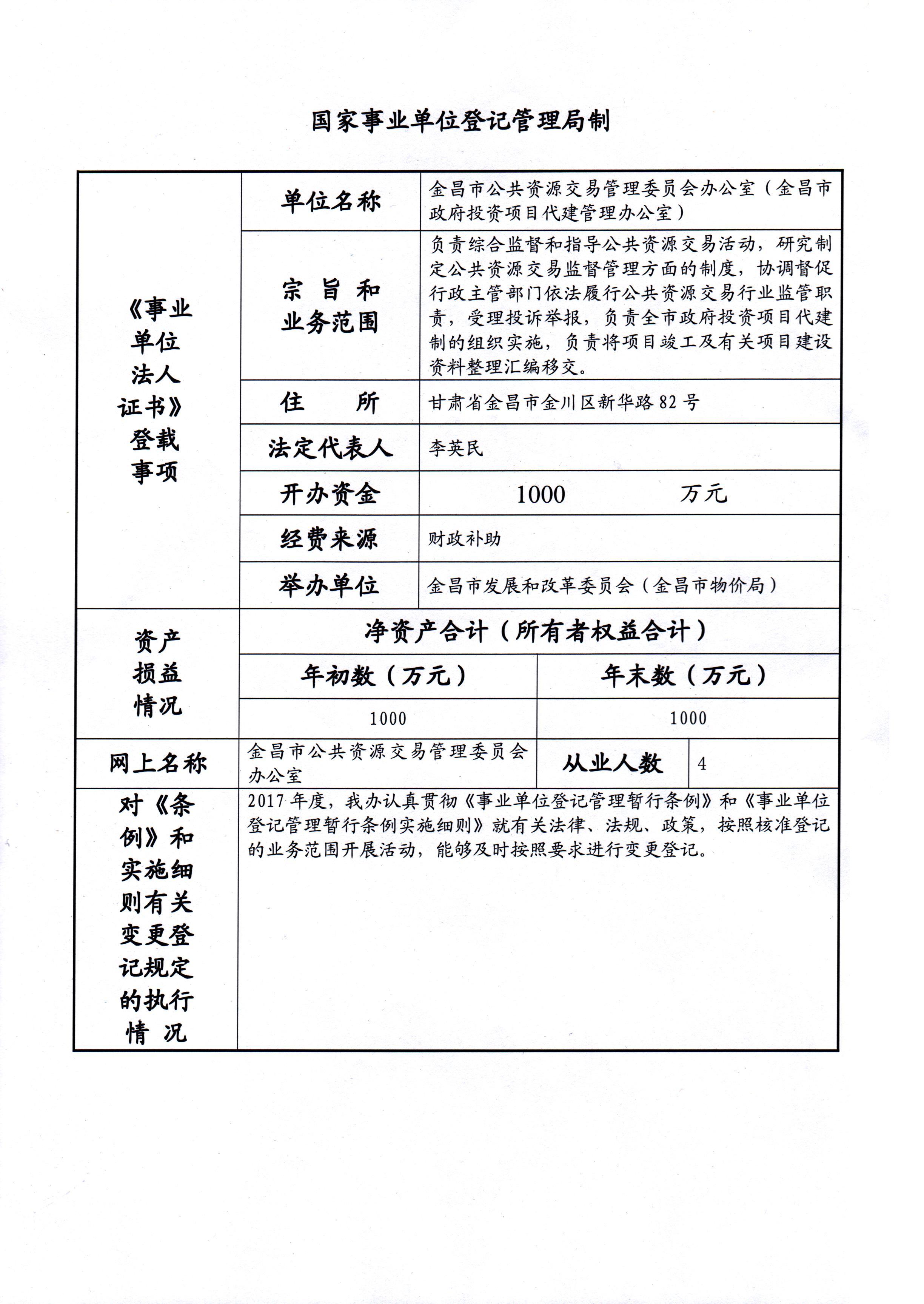 金昌市公共资源交易管理委员会办公室2017年度报告书