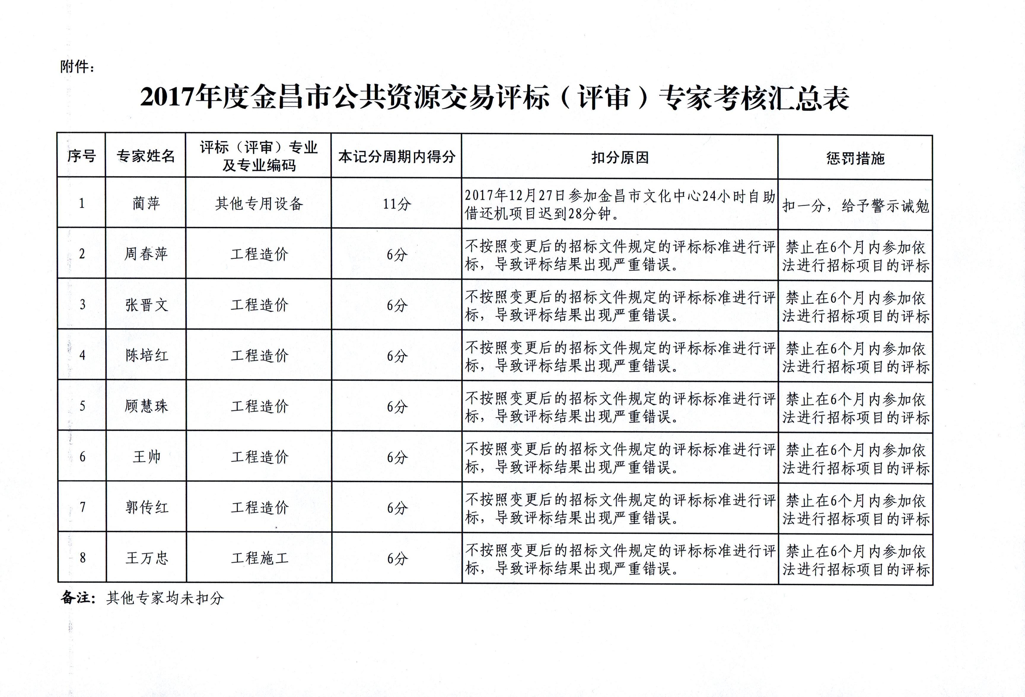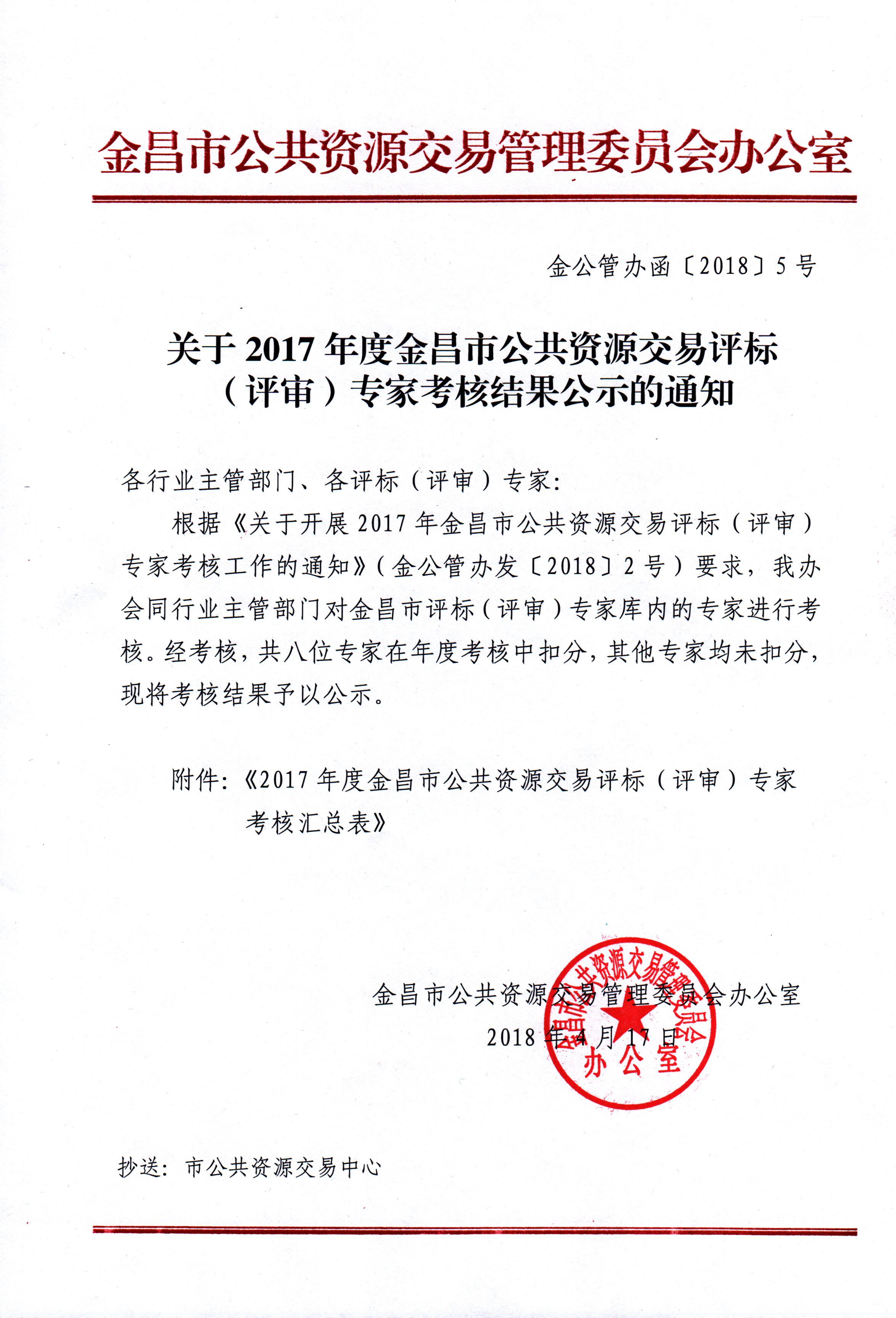 2017年度金昌市公共资源交易评标(评审)专家考核结果公示