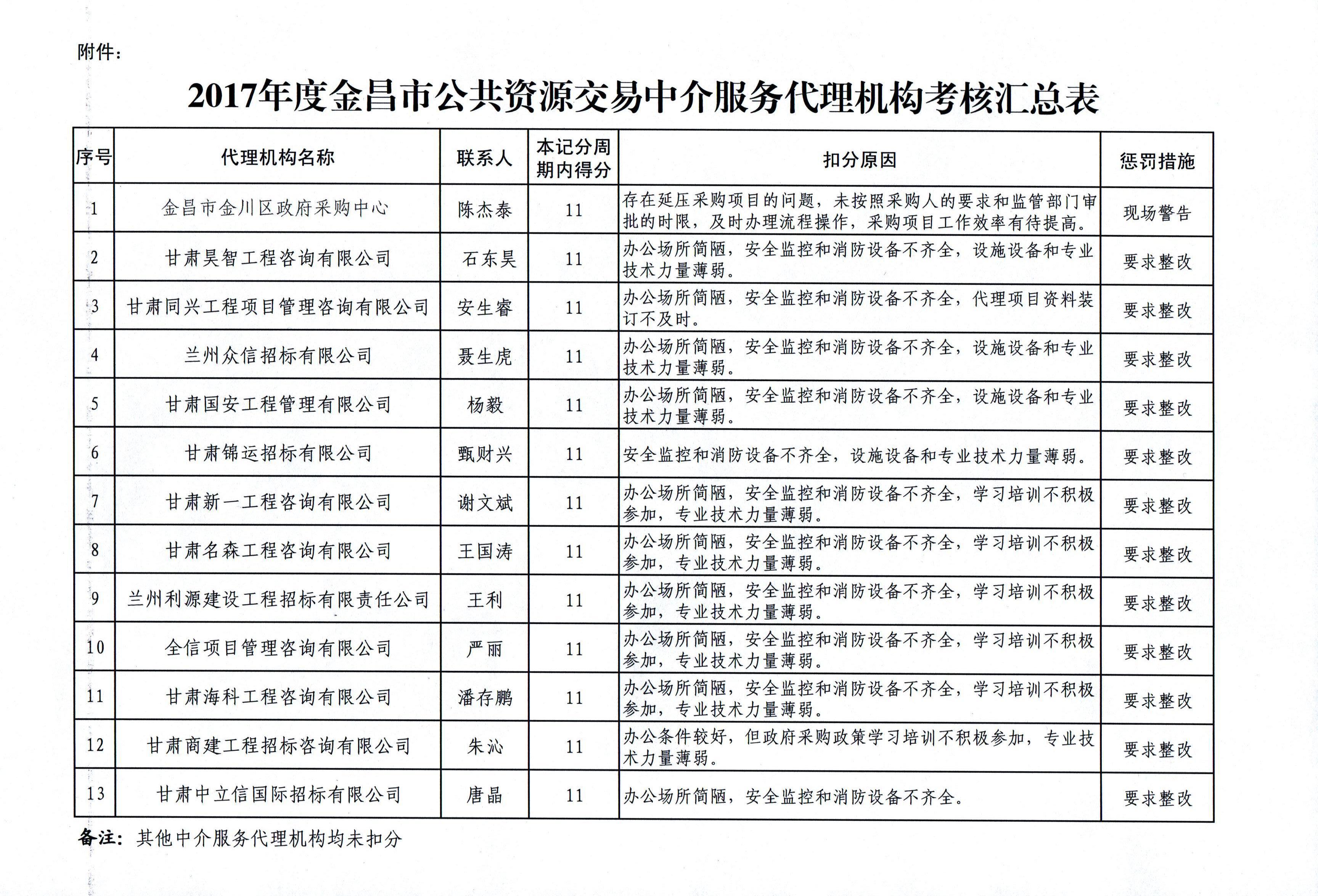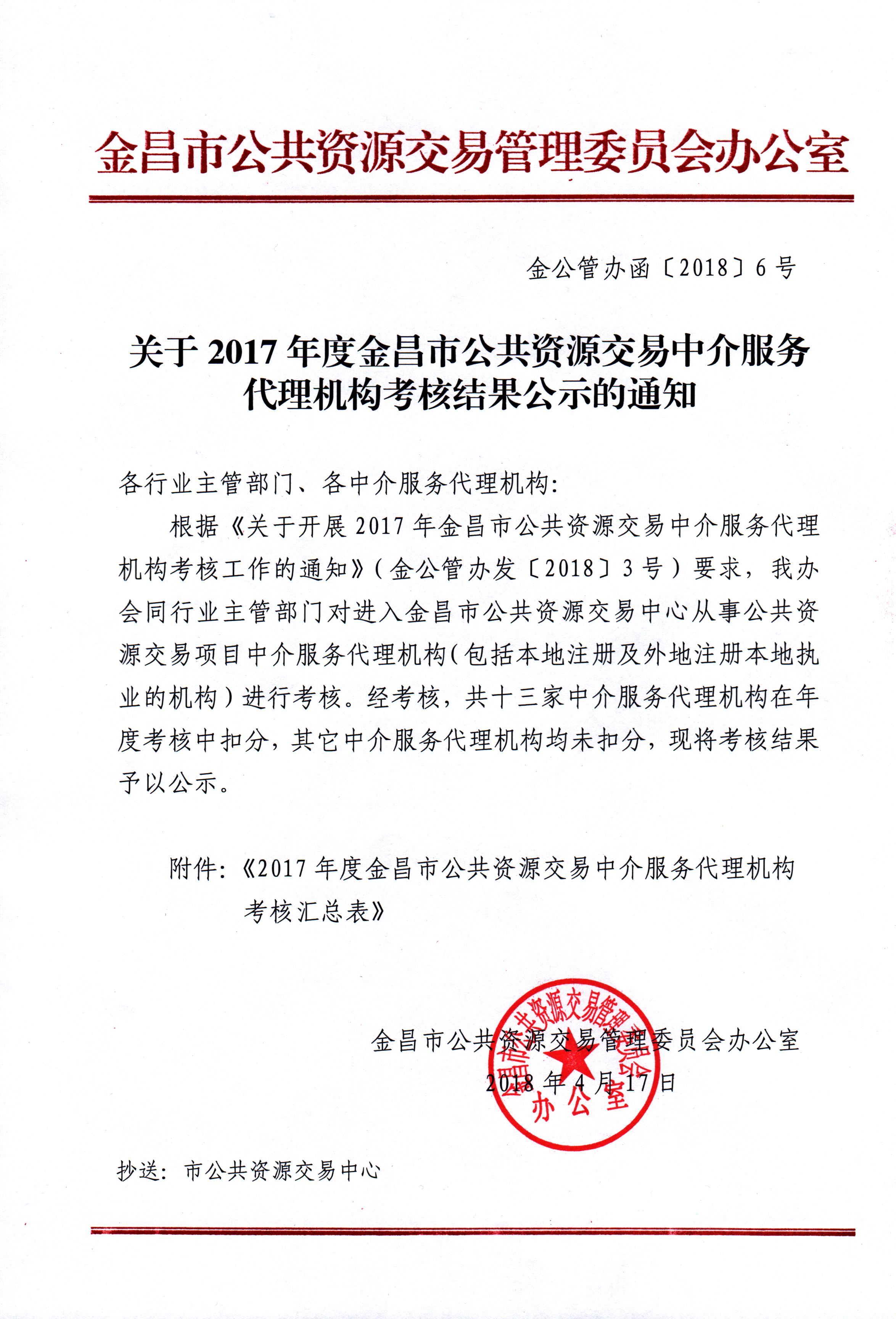 2017年度金昌市公共资源交易中介服务代理机构考核结果公示